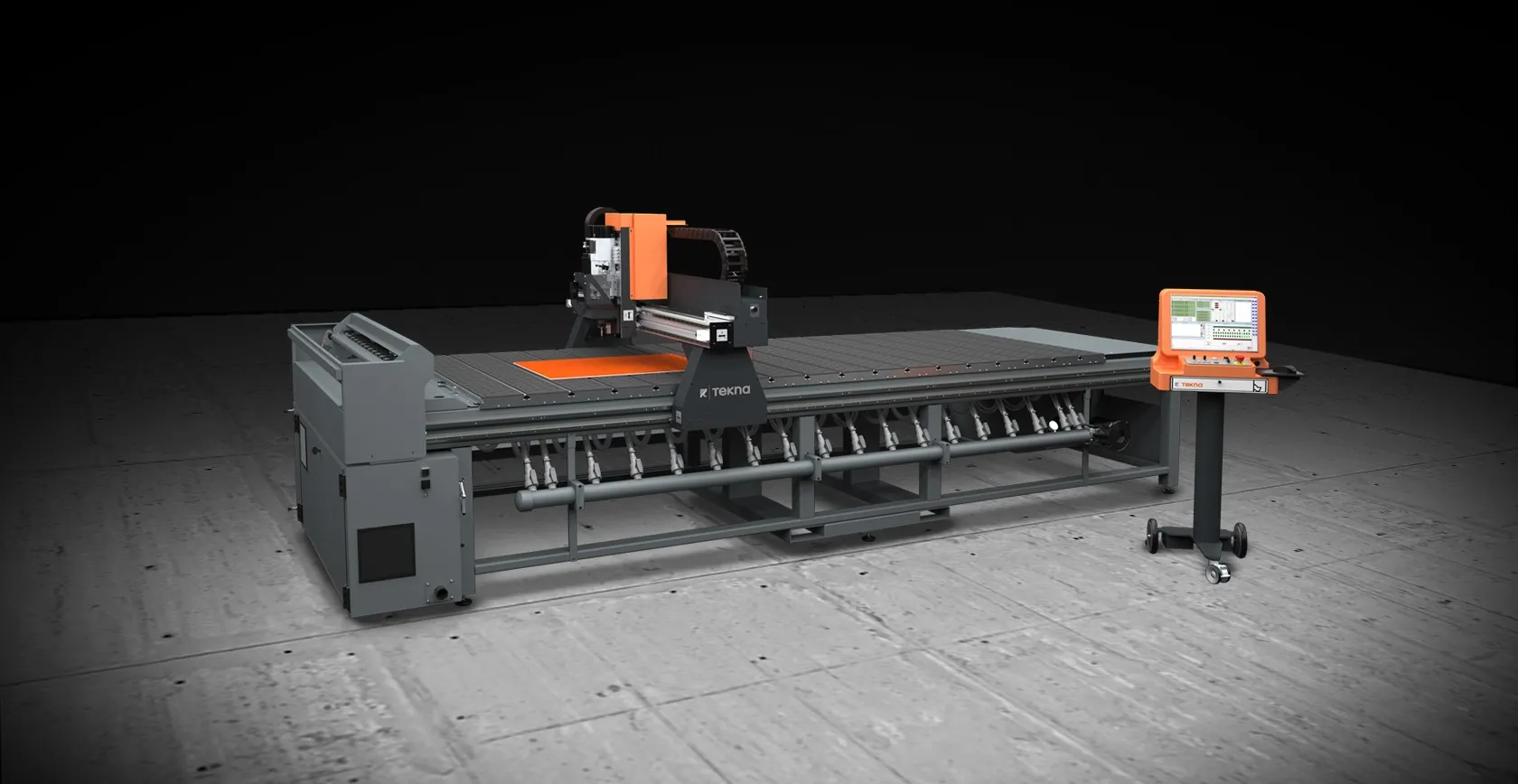 3-axis CNC vertical machining center featured with a clamping system made up of vacuum tables that allow panels and plates to be held by vacuum; this solution is useful to obtain an extremely efficient machining of thin components that could hardly be fixed by means of a traditional clamping system. The machining center is equipped with a series of valves that turn on/off different areas of the machining table, thus concentrating the suction on one area and optimizing the clamping of components with limited dimensions. It is designed for drilling and interpolated milling operations on composite panels, panels and plates in aluminum and steel. To create programs that control the machines, Tekna provides user-friendly software tools that can be used both by professional CNC programmers, who can implement the most complex solutions, and by completely inexperienced users; after a few training hours the customer will be able to operate the machining center using a graphical programming. Software solutions offered by Tekna result from an accurate design and from the actual customer needs analysis. The simplicity of usage of these solutions reduces the management time and costs.